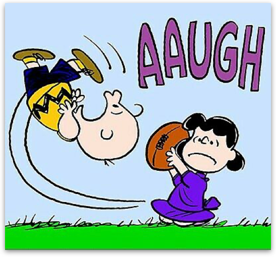 A friend of mine once mused that he'd rather have it said that he loved too many than that he loved too few. Indeed, we may love too many, be fooled by pretense and our hearts may be broken, but, it's better to be less like Lucy, and more like Charlie Brown.